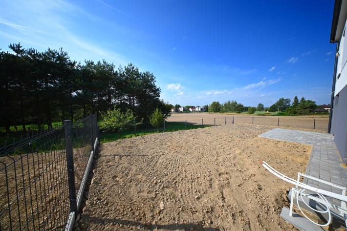Teren nieruchomości ogrodzony, ułożona kostka brukowa, dojazd utwardzony