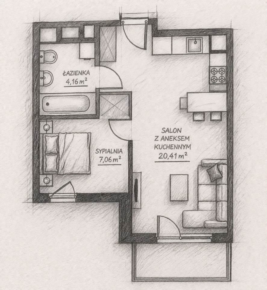 Nowe 1, 2, 3 lub 4 pokojowe apartamenty w stanie deweloperskim które dają Ci pełną swobodę aranżacji- urządzasz je dokładnie tak, jak chcesz, bez kompromisów i cudzych decyzji !