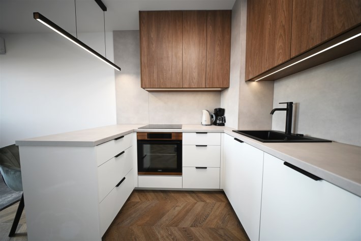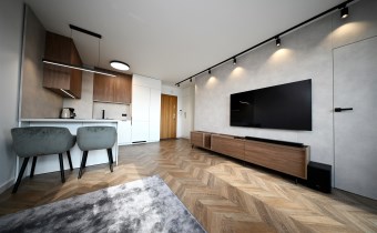 Apartament jest w pełni umeblowany i wyposażony – sprzedawany „pod klucz”, co oznacza, że nie wymaga żadnych dodatkowych nakładów finansowych. Wystarczy wnieść swoje rzeczy i zamieszkać.