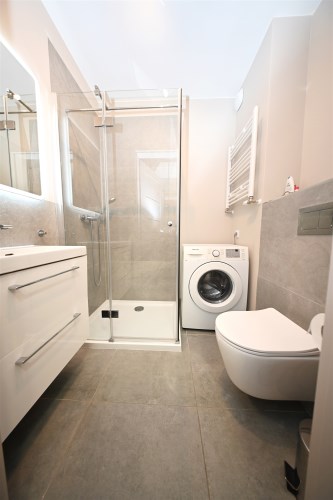 Nowoczesna łazienka z prysznicem i pralką
