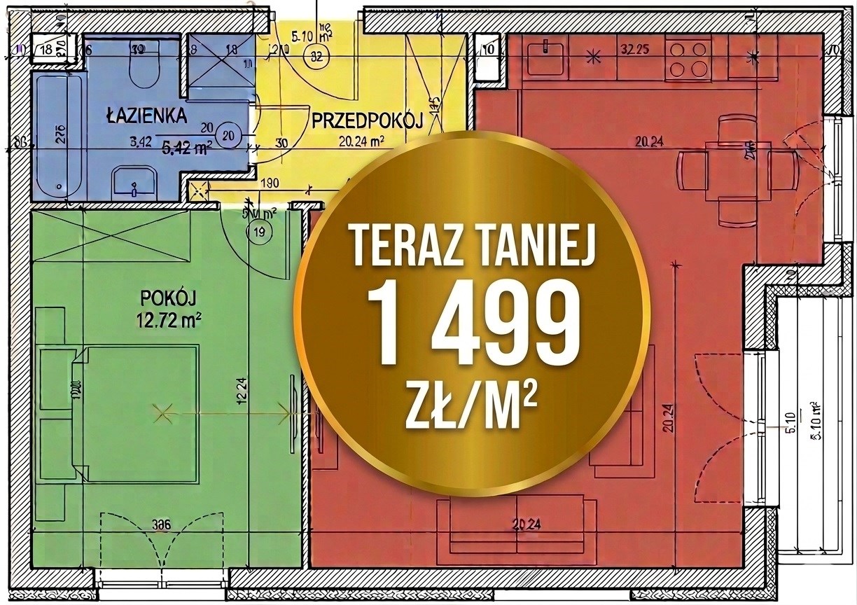 2 pokoje 43,19 m2 9 900,00 zł/m2