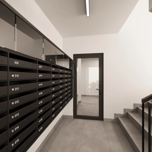 Nowoczesny budynek zaopatrzony w windy z dojazdem do poziomu -1 gdzie znajdują się miejsca postojowe i komórki lokatorskie .